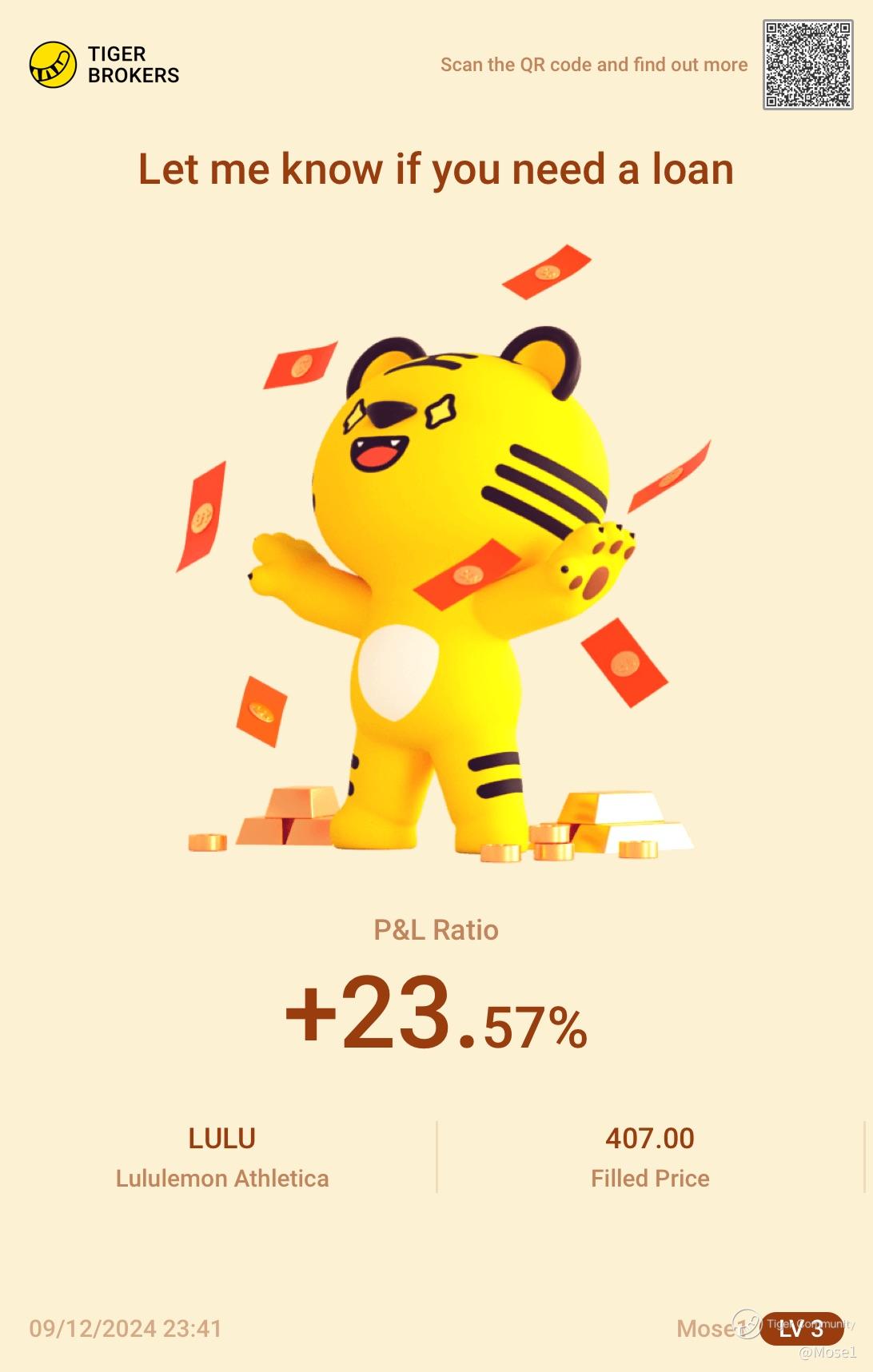 $Lululemon Athletica(LULU)$  Sold too early.. anyway profit is still a profit! Good trade!