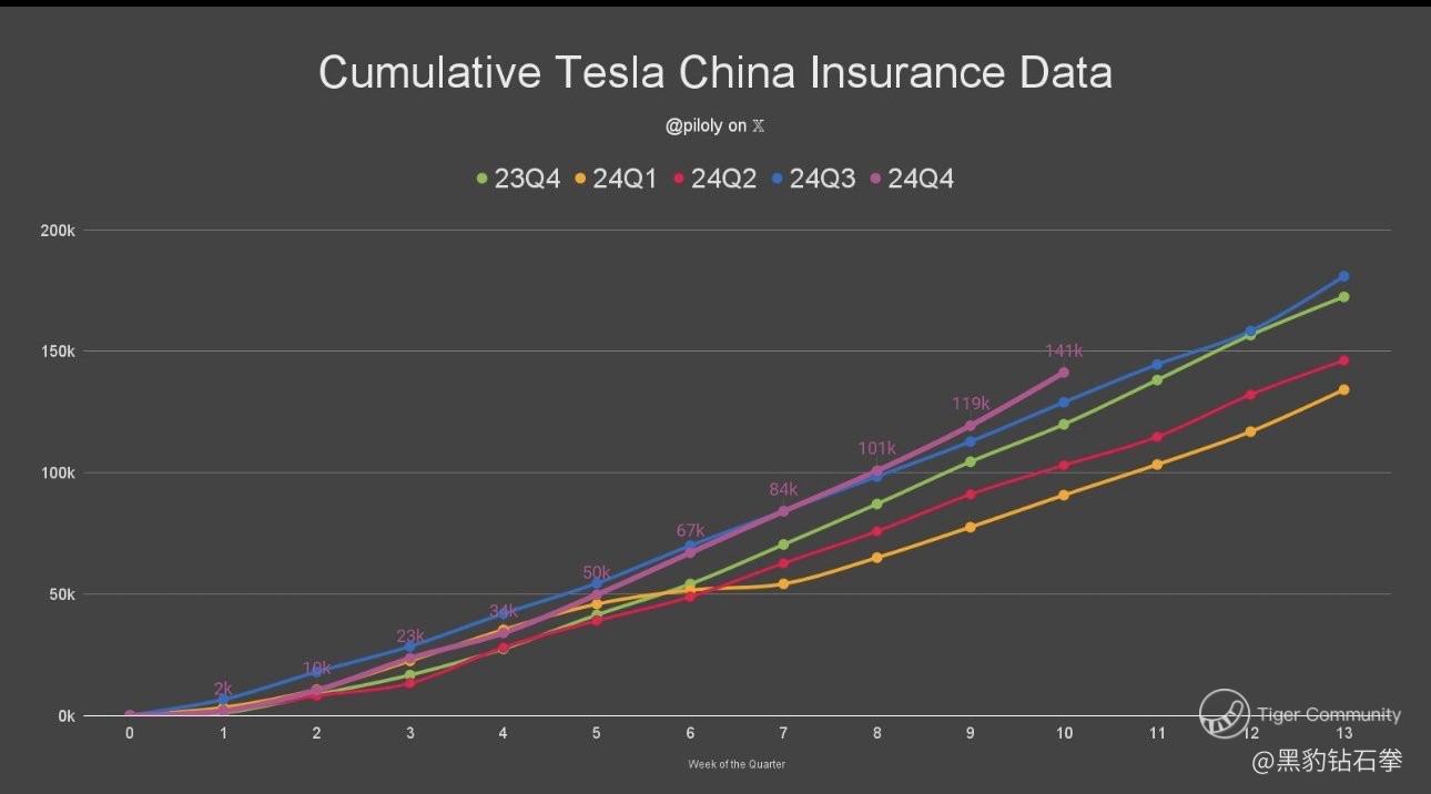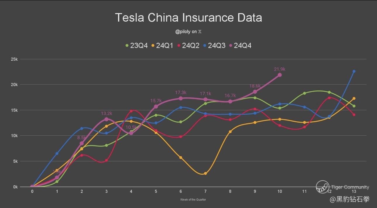 $Tesla Motors(TSLA)$ China reported an outstanding 21,900 insured registrations for the week of Dec 2-8. This was the 2nd highest week of the year, and 3rd highest week ever. With 3 weeks left in the quarter, 4Q is +17.8% YoY and +9.5% QoQ.