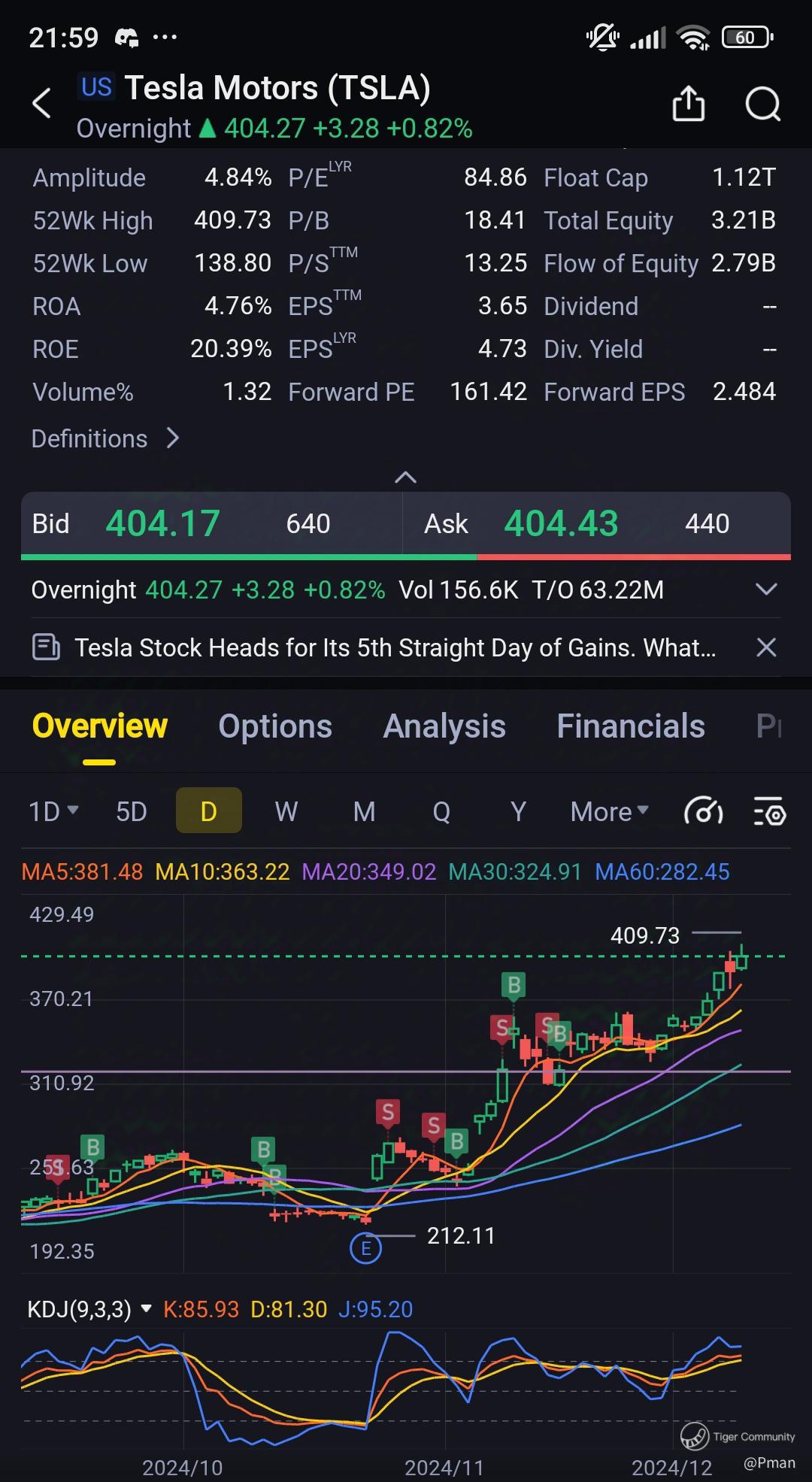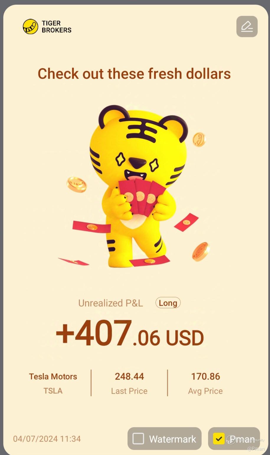 I was a short term investor before last July when I managed to buy at $170. I sold of all my position back then and took my family for a lavish seafood meal, as I wasn't sure if Tesla will still keep going up before as the history peak price stood at $409. Psychologically, those who trapped at $409 since last peak at 2021, some might have sold off to get back some cash and now they are observing if price can breakthrough $414, so I believe $414 will have resistance unless there is a big candle starting from $409. So, if I were to trade short term, I will wait and see the movement after $409.