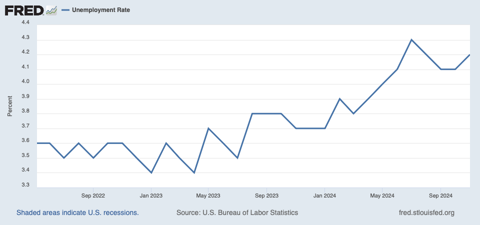 On the employment front, the trends are worth watching. This is the U-3 unemployment rate, which is the percentage of people in the workforce without a job who are actively seeking a job.