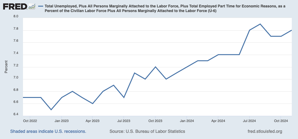 A rising U-6 rate with a backdrop of rising interest rates, high inflation, and a stock market at all-time highs is a warning sign that we may be in for a crash in 2025.
