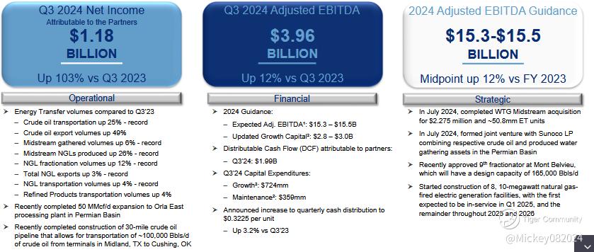 For Q4 2024, ET anticipates an Adjusted EBITDA between $3.8 billion and $4.0 billion. This projection aligns with the company's annual guidance of $15.3 billion to $15.5 billion for 2024, indicating a strong finish to the year.