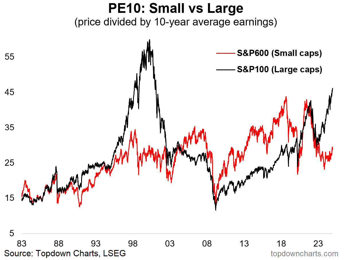 5. Small vs Large Valuations: Arguably this chart slipped under the radar for many, with US small cap stocks (S&P600 in this case) PE10 valuation ratio reaching levels very similar to those seen during the depths of the pandemic crash. I always say when valuations get extreme enough they have a tendency to speak for themselves (case in point here). I’d say this chart remains particularly interesting as large cap stock valuations reach new post-2021 heights.