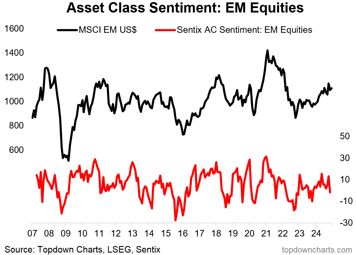 “Meanwhile surveyed sentiment has ticked up but is still very far from bullish consensus, I would say more people are sceptical on EM now vs this time last year, even though many elements for the EM bull case have actually improved a lot since then.” (19 Jan 2024)