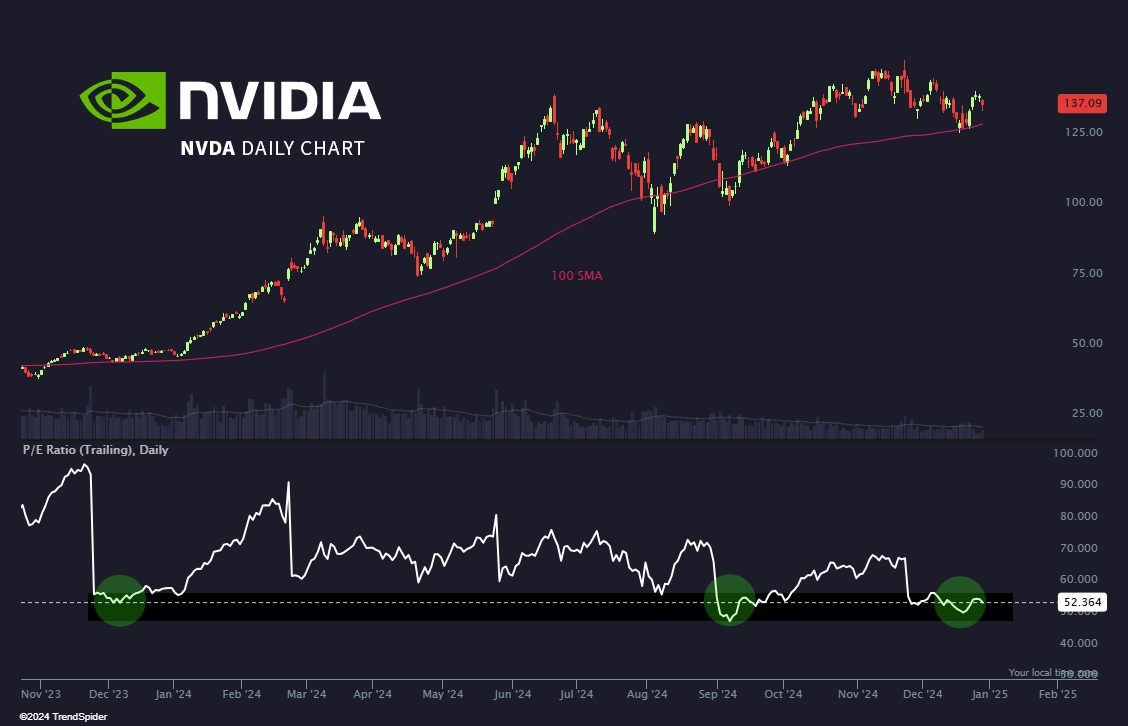 $NVIDIA(NVDA)$ bulls have been happily paying 50x earnings for over a year...