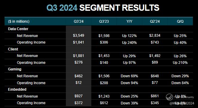 Gaming Segment: Revenue in this segment declined, driven by a reduction in gaming-related GPU sales. This trend is attributed to strong competition from Nvidia.