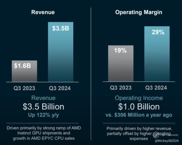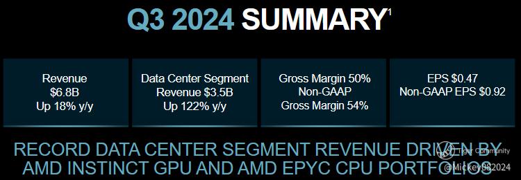 Revenue: AMD reported $6.8 billion in revenue, a significant increase of 18% year-over-year, compared to $5.8 billion in Q3 2023.