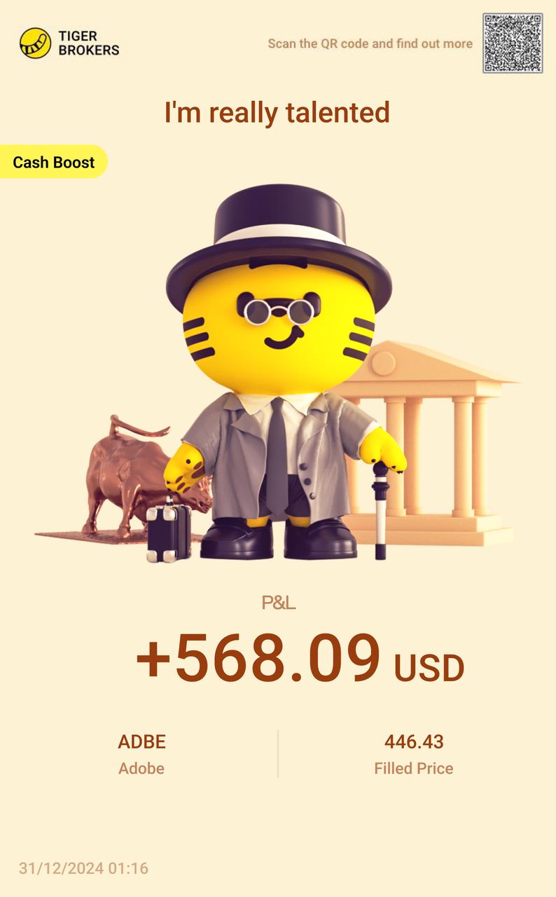 $Adobe(ADBE)$ Although the overall trend is downward, I still made some profits using my Cash Boost Account. This is the appeal of short-term trading.
