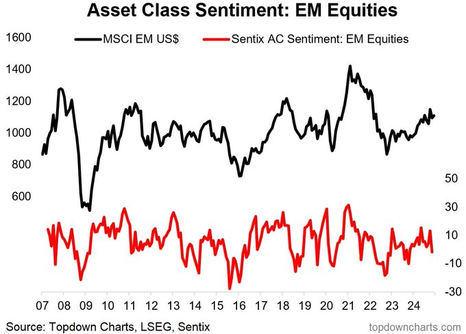 and funnily enough, after an earlier push higher, Investor Sentiment on emerging markets has dropped back towards where it was the start of the year!