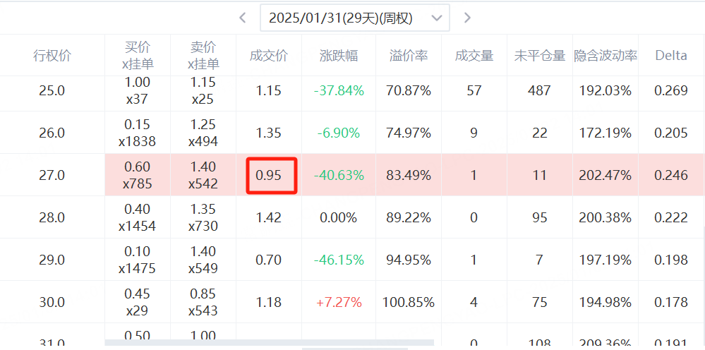Buy a RGTI Jan 31, 2025, $27 strike call option, paying a premium of $95.