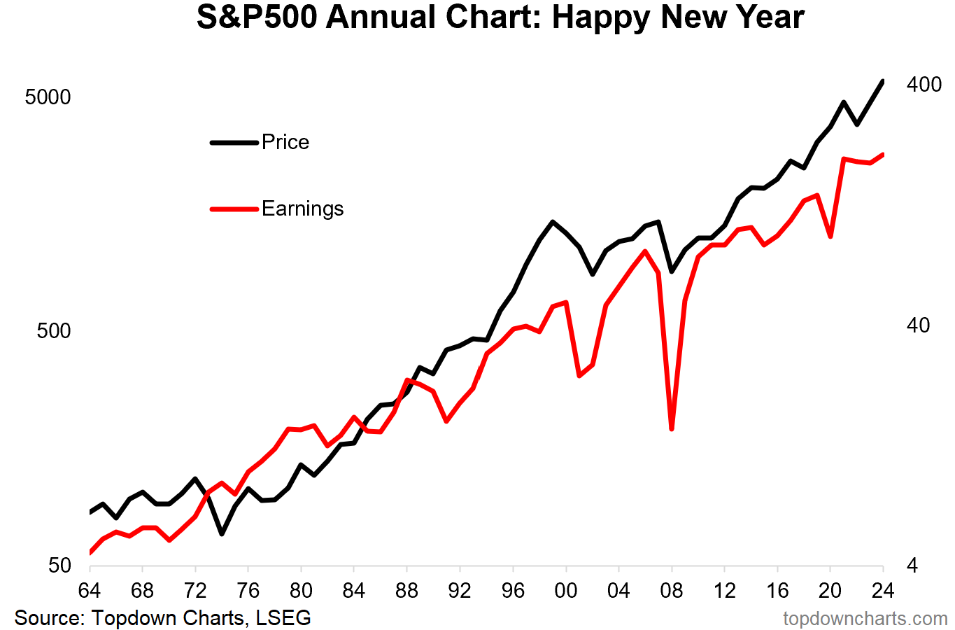 The $.SPX(.SPX)$ closed 2024 up 23.3% (25% including dividends).