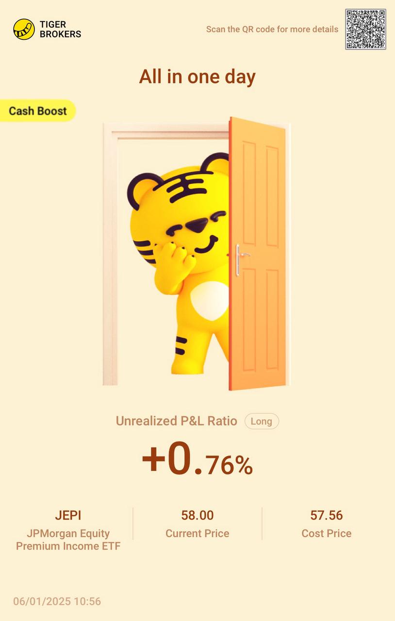 $JPMorgan Equity Premium Income ETF(JEPI)$ Small gains~