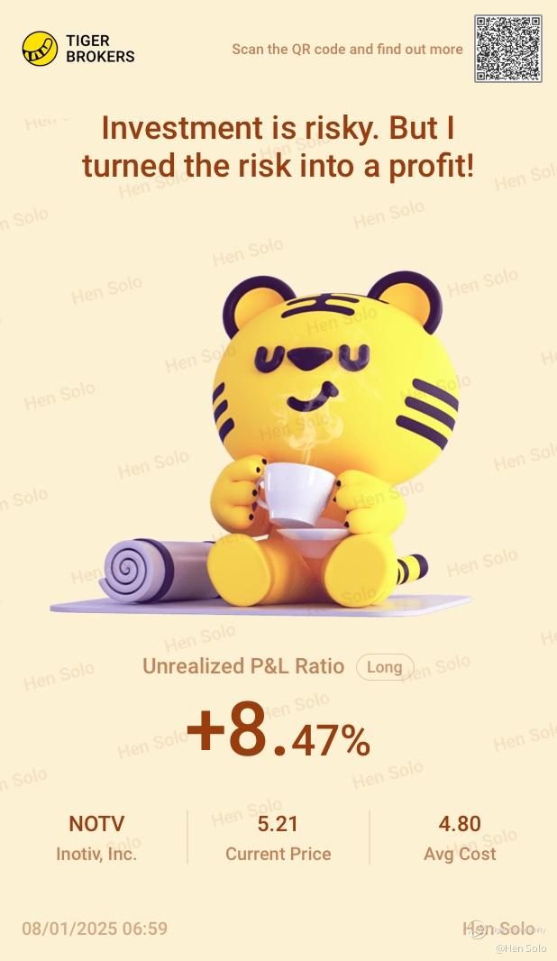 π§§ππ§§π Morena BC, have a look at my unrealised gains of +8.47% on NOTV, it's nearly as prosperous as my lucky 888 Tiger Coins! π―π° In π¨π³π¨π³π¨π³ Chinese culture, triple 8 is a symbol of fortune, and your brilliant recommendation was the golden thread that tied it all together. Thank you so much for your insight and guidance, your wisdom continues to lead the way to success. Hereβs to more wins and prosperity ahead for us all!π¨π³π§§ 888 π§§π§§π§§ποΈπ²π