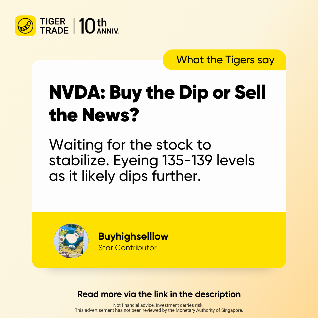 Nothing wrong to hold nvda long term. But short term swings ensures profit is secured when overbought. Don't get caught up thinking Nivida is going straight up in one line. Time to wait till the stock stabilizes in the dip for a re-entry. Looking at 135-139 levels, predict stock is gonna further slide down towards this range.