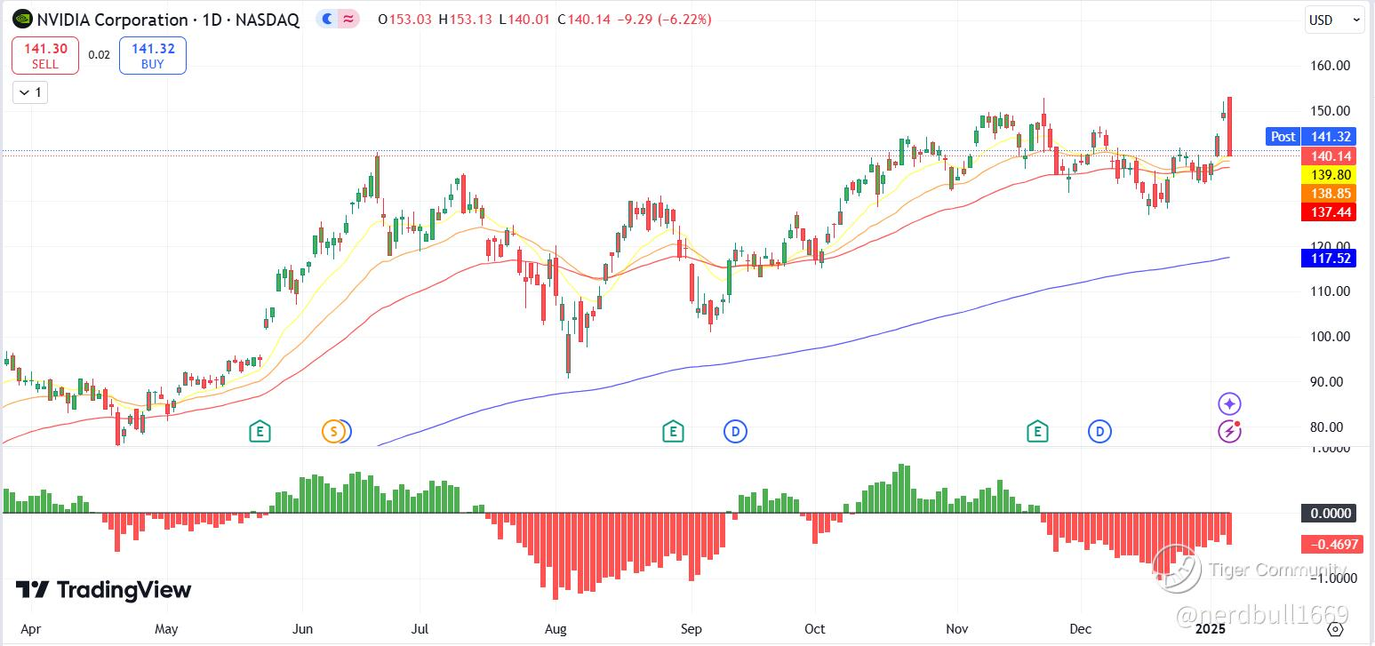 Despite these impressive announcements, NVIDIA’s stock experienced significant volatility on 7 Jan 2025, with a 2.5% pre-market rise, only to close the day down 4% at $141.60.