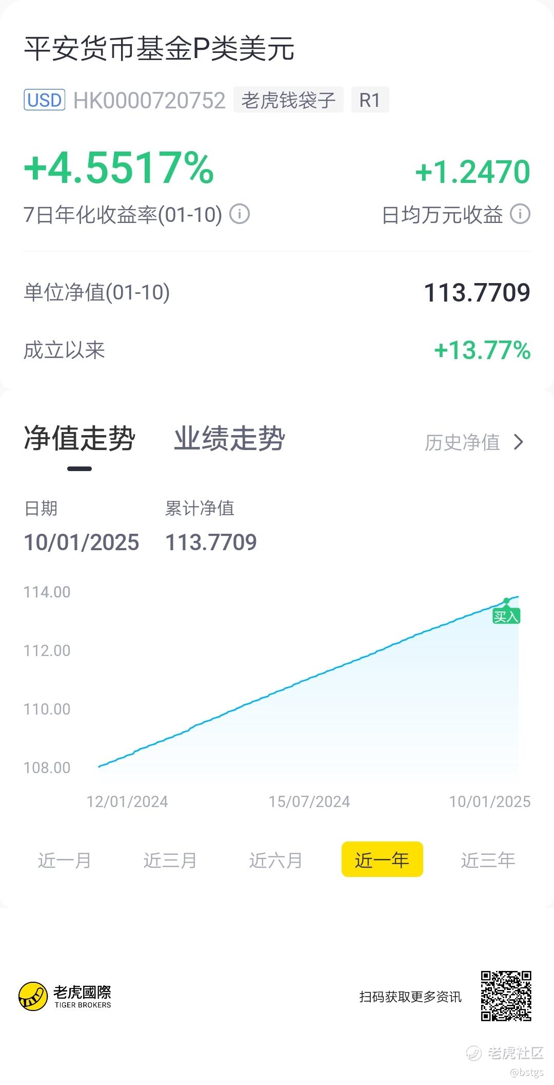 $平安货币基金P类美元(HK0000720752.USD)$