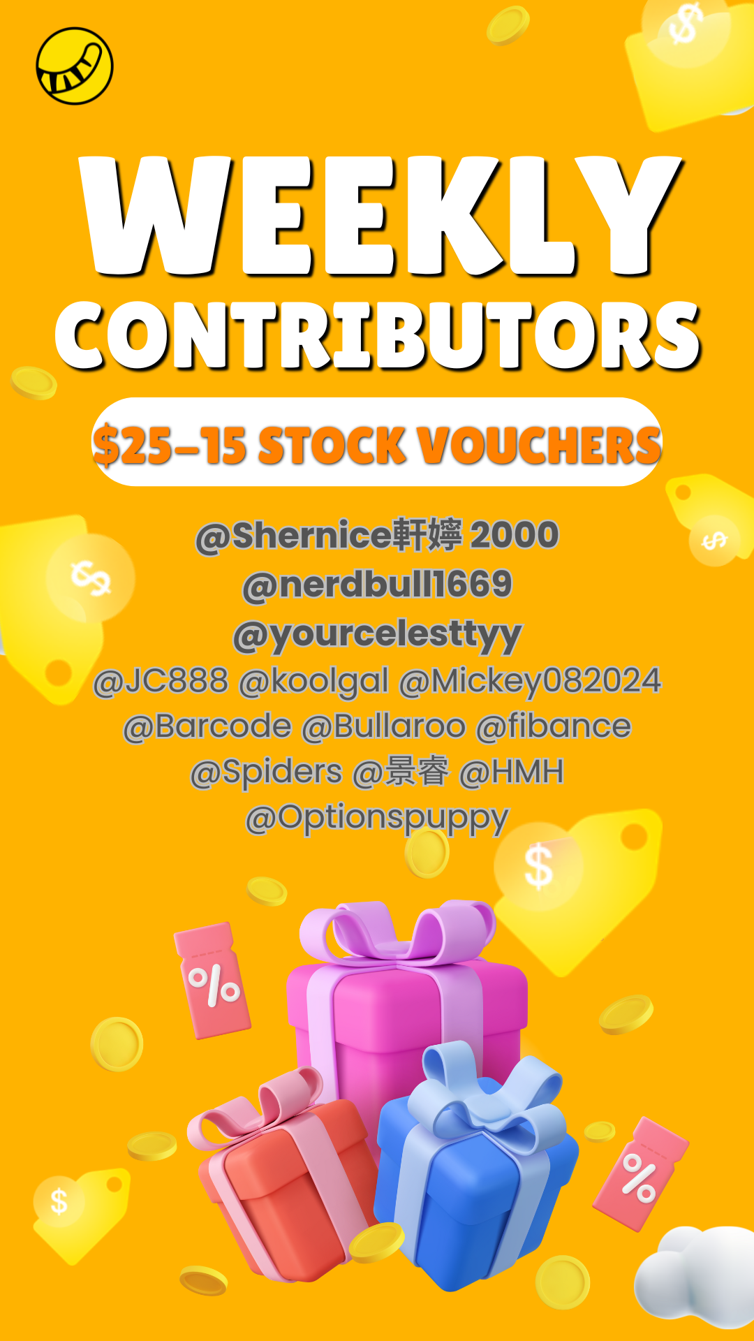 Weekly Top Contributor ($15 stock voucher): JC888 koolgal Mickey082024 Barcode Bullaroo fibance Spiders ζ―ηΏ HMH Optionspuppy