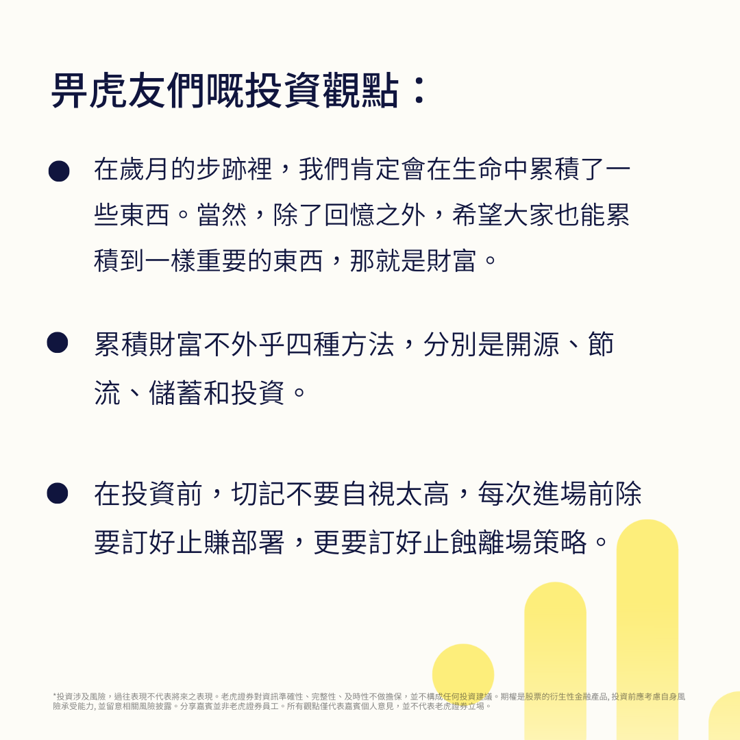 Q:在經歷了多年的理財和投資後,有哪些經驗或者心得可以跟我們分享一下呢?