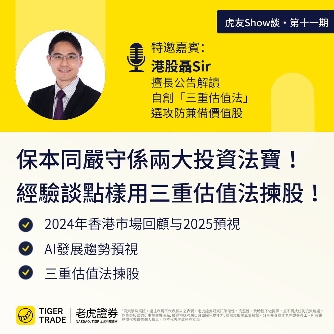 本期虎友Show談,我們很榮幸邀請到在港股市場有着豐厚投資經營的 @港股聶Sir ,來看看他是如何通過自創“三重估值法”選股的吧~~~[Look back]