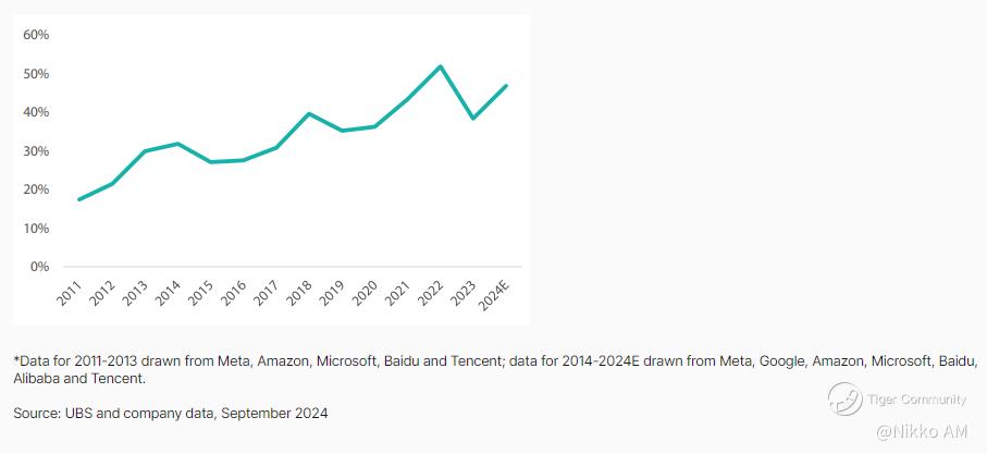 Chart 4: Big Tech’s capex/operating cash flow*