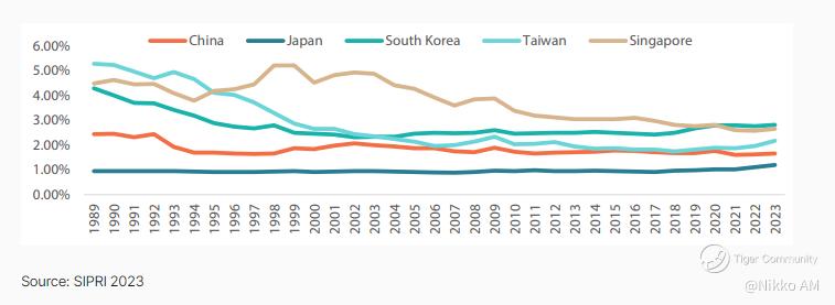 Chart 1: Defence spending as percentage of GDP (Gross Domestic Product)