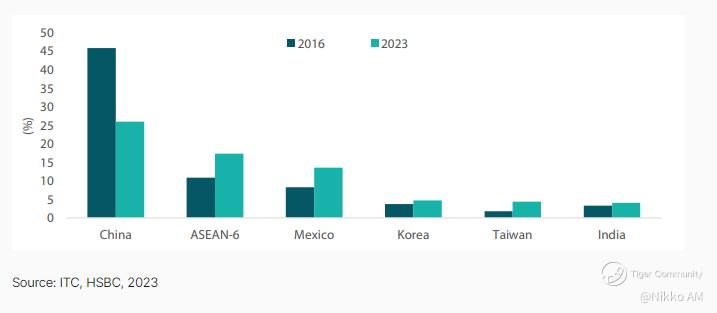 Chart 3: US trade deficit with Asia and Mexico as a percentage of total