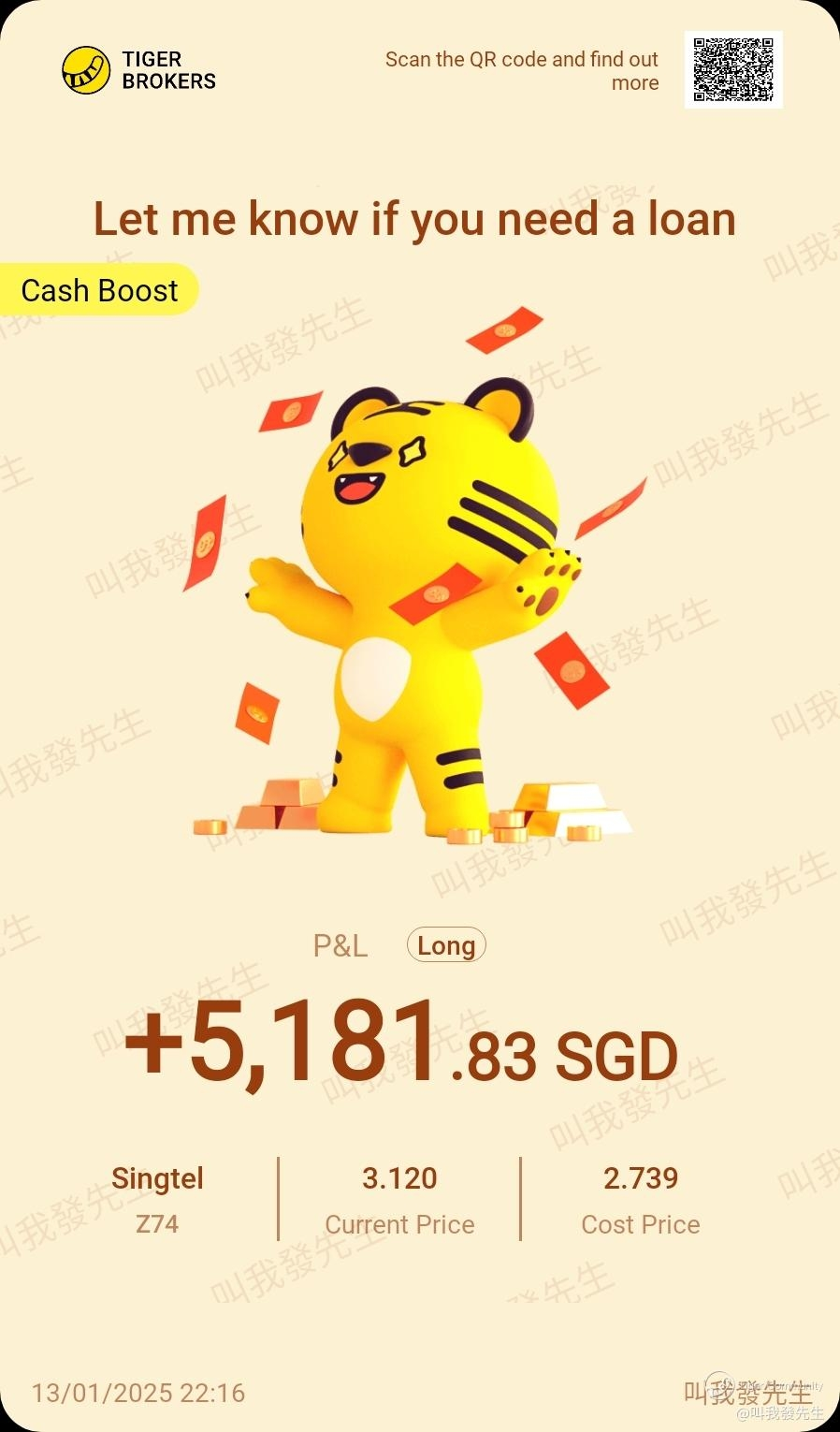 On 13 January, we're really excited to see @叫我發先生 made over SGD 5000 by investing in $Z74 with his Cash Boost Account! Congrats to him!🥳 And we are looking forward to seeing more trade sharings.