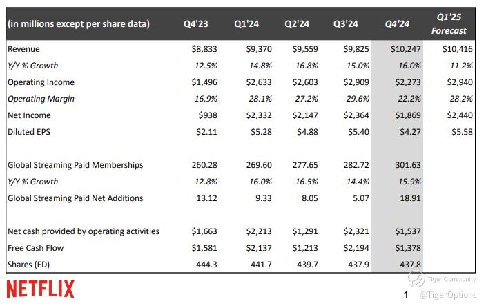 $Netflix(NFLX)$ has done it again. The streaming giant reported another stellar quarter, surpassing expectations on revenue, earnings per share, and paid memberships. As someone who closely follows the streaming wars, I see Netflix’s latest performance as a testament to its ability to innovate, adapt, and maintain its dominance in a highly competitive market. With 301.63 million subscribers—a milestone few could have predicted a decade ago—Netflix has shown that it remains not only relevant but indispensable in the world of entertainment.