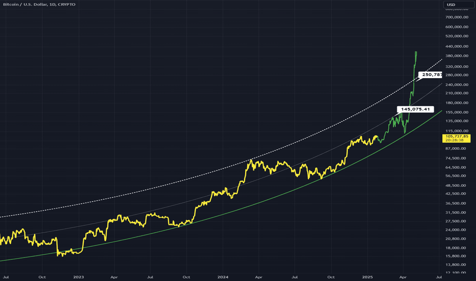 BTC is following this green line up which I have used to draw into a channel I'm still very bullish on BTC and expect one massive more move up before the bears come in What do you guys think about 250K ? Daily timeframe