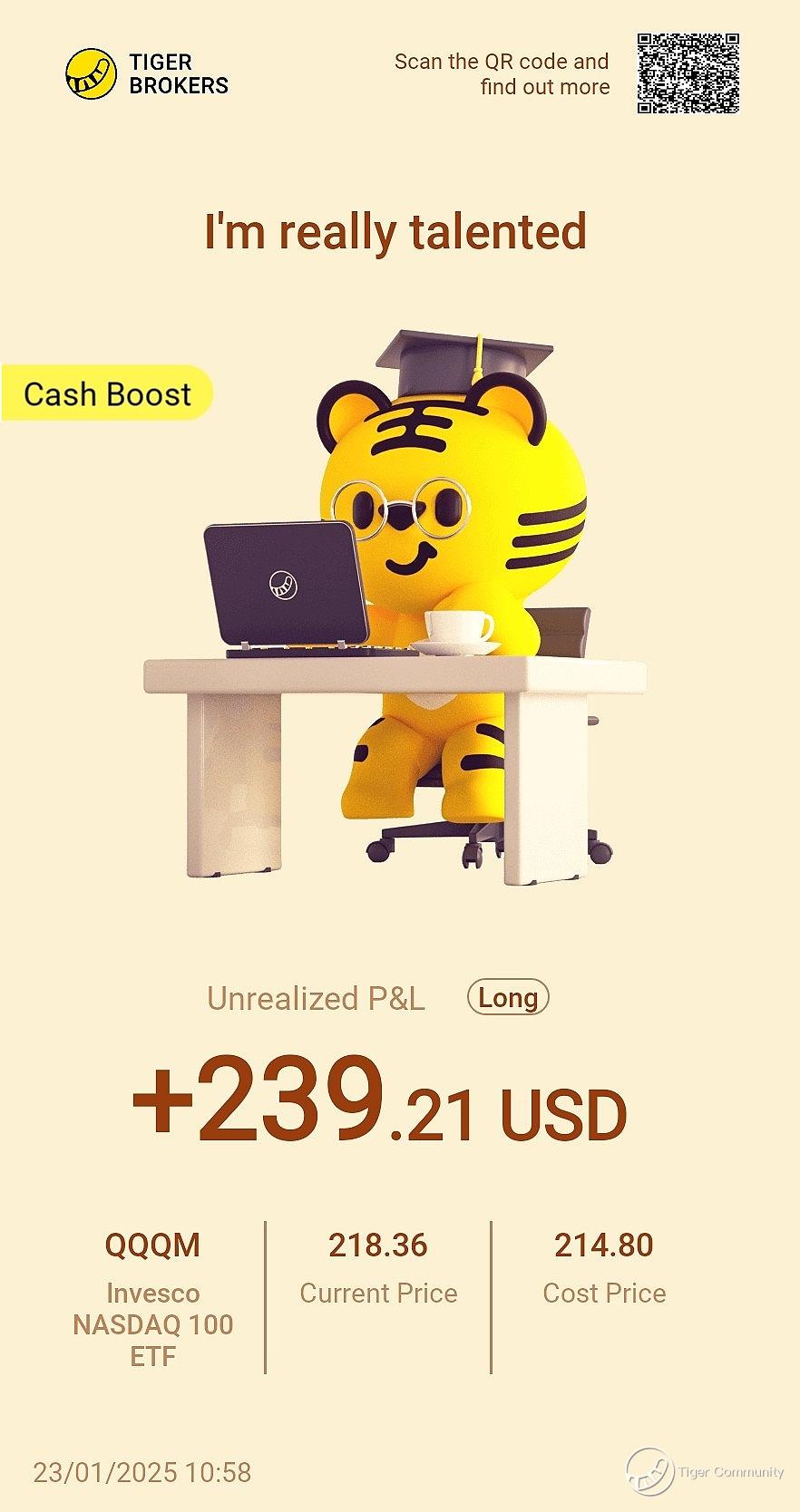 $Invesco NASDAQ 100 ETF(QQQM)$ I can’t help but share my profits today! This time trading the Invesco NASDAQ 100 ETF really paid off! This ETF closely tracks the performance of the $NASDAQ 100(NDX)$ , and its recent price has climbed to $218.36, driven by the overall recovery of the tech sector. Market sentiment has been highly positive, with great liquidity—catching this wave felt incredibly rewarding! A big thanks to CBA!