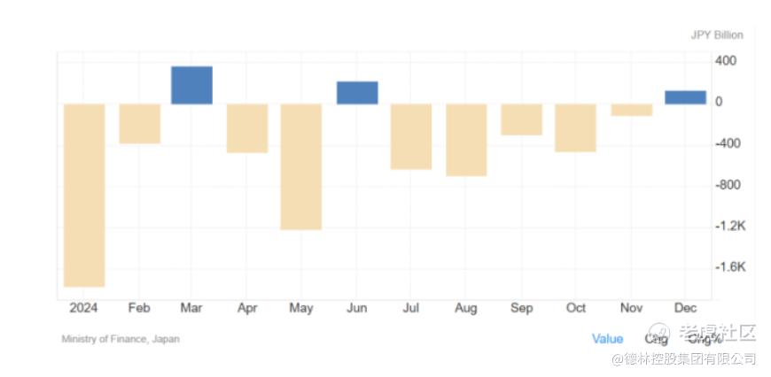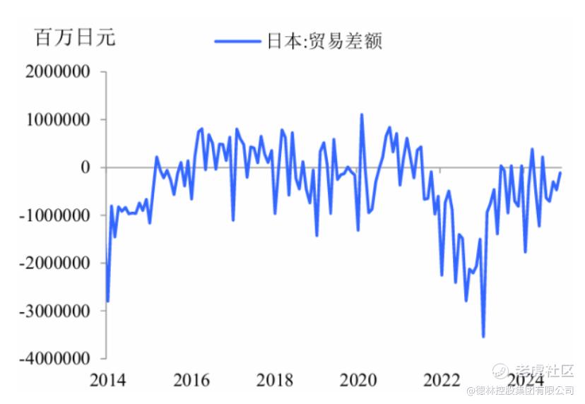 日元的下跌本來是有利於日本的出口,日本貿易雖然仍然是逆差,2024年貿易逆差5.3萬億日元,連續4年貿易逆差,但是差值在縮小(2023年是5.9萬億日元)。這是在美國本輪加息後,日元貶值50%的基礎上取得的。而這個貿易逆差縮小的成績,很難在日本持續加息下保持。