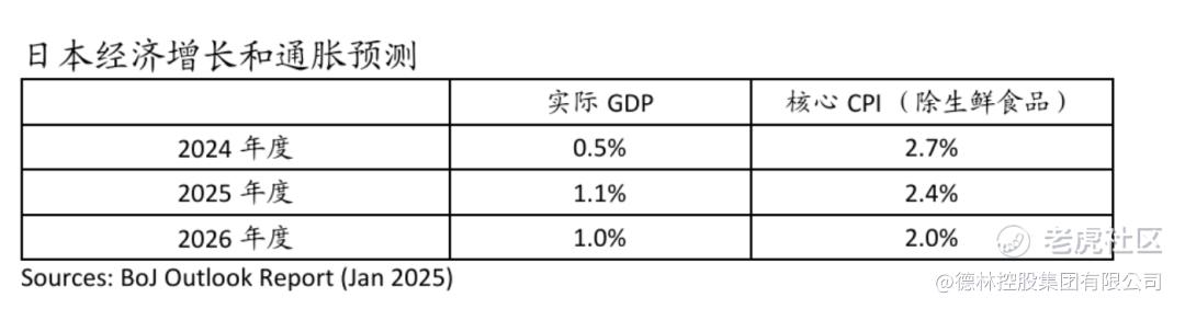 日本央行在2025年展望報告中,把2025年度的核心CPI預測提高到2.4%,明顯高於目標2%。爲什麼提高了通脹目標?這是爲了防止通脹又下降,而預留出的緩衝空間。這樣,日本可以適度提高利率,從而在經濟衰退時有降低利率的餘地。