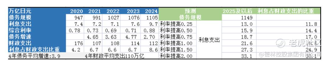 按照2024年日本未償還的債務規模是1105萬億日元,每加息1%,新增利息爲11萬億日元。那麼,即使浮盈市值達到70萬億的日本央行的ETF收益,在可以完全兌現的假設下,也只能是支持緩緩加息。