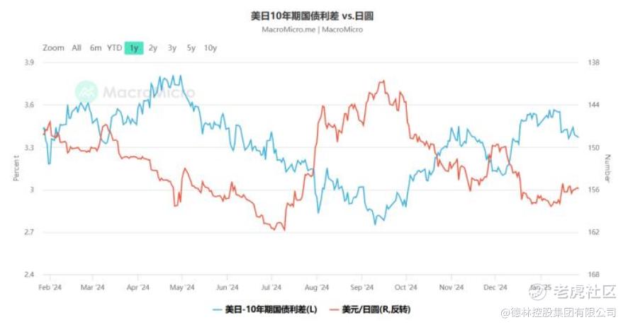 2. 日本經濟的復甦並不穩固,長期通縮令民衆和企業都仍然偏向儲蓄而不敢消費和擴張,而高債務也掣肘了政府的擴張;另一方面,在美日利差保持在套利區間內,日本也無法通過加息讓資金迴流日本,反而必須維持低利率來保證美國和西方金融體系的流動性。
