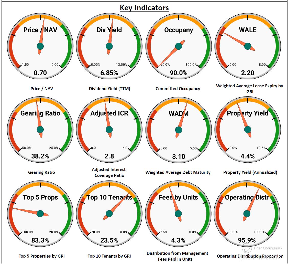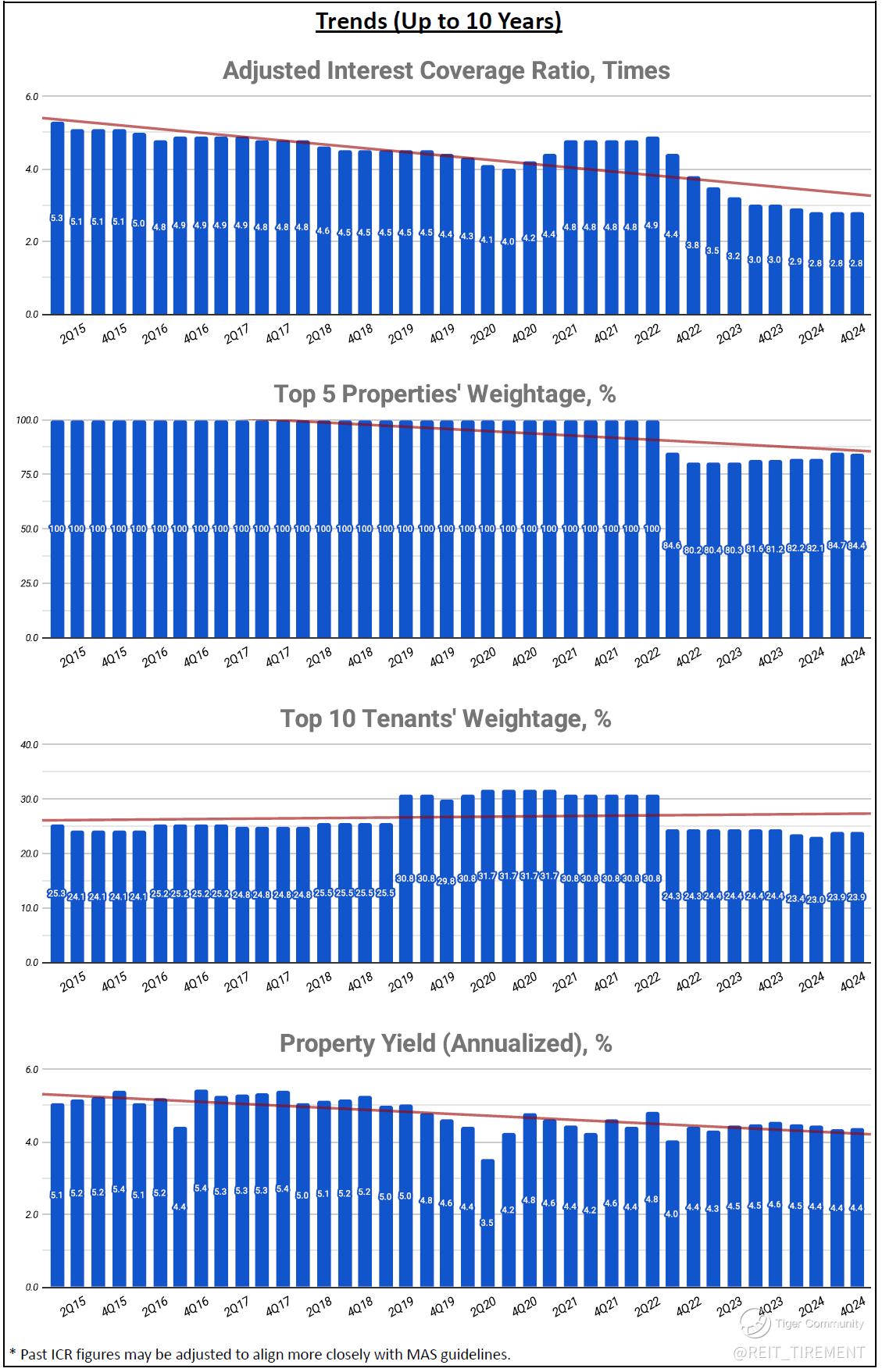 Downtrend: Adjusted Interest Coverage Ratio, Top 5 Properties' Weightage, Property Yield, Operating Distributable Income on Capital, Operating Distributable Income Margin