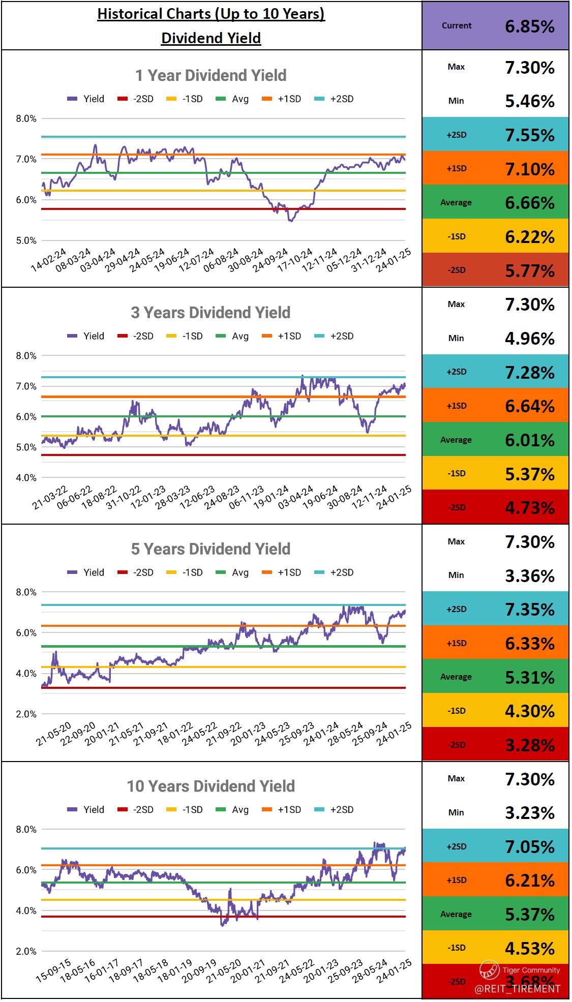 Dividend Yield: Average for 1y; Above +1SD for 3y, 5y & 10y