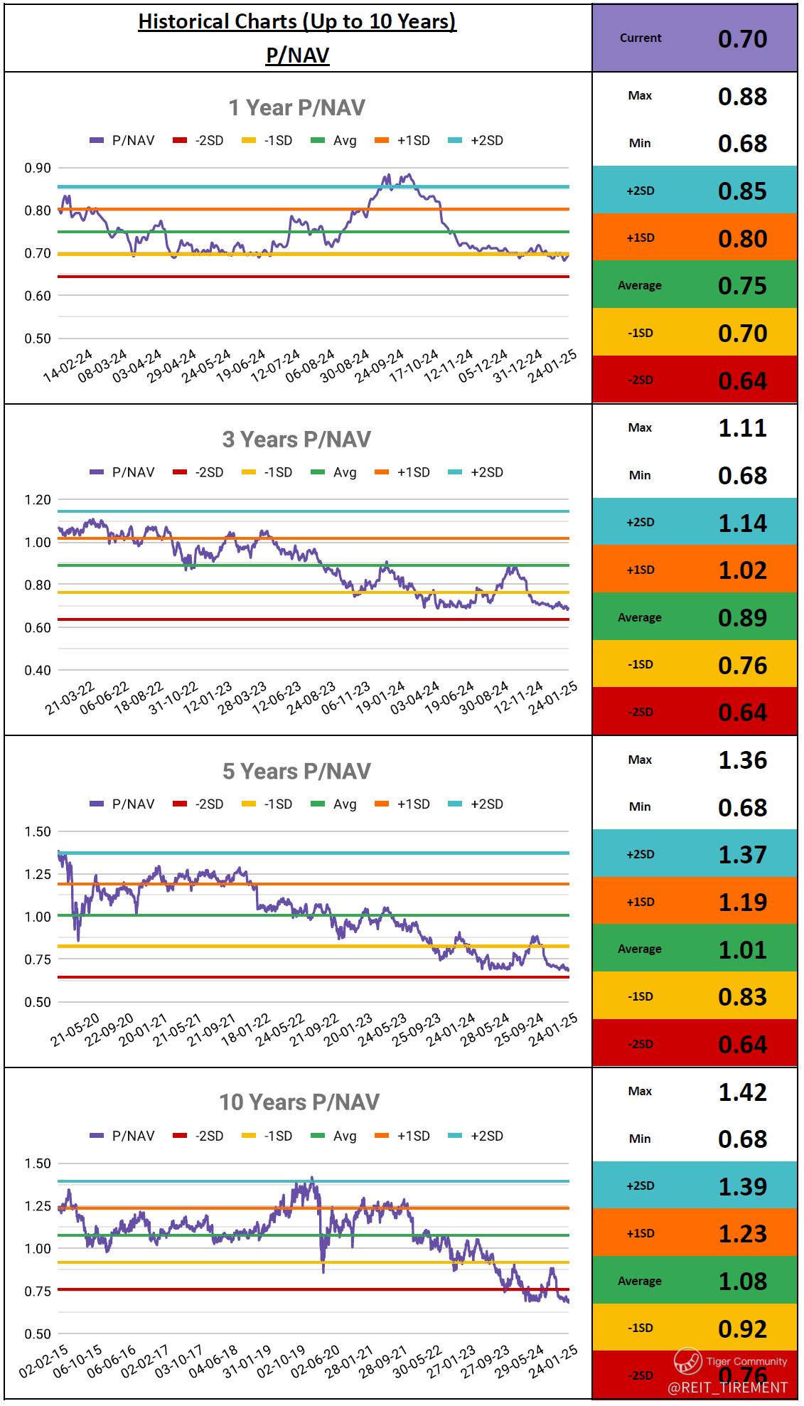 P/NAV: Average for 1y; Below -1SD for 3y & 5y; Below -2SD for 10y