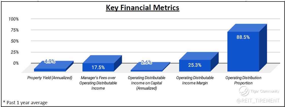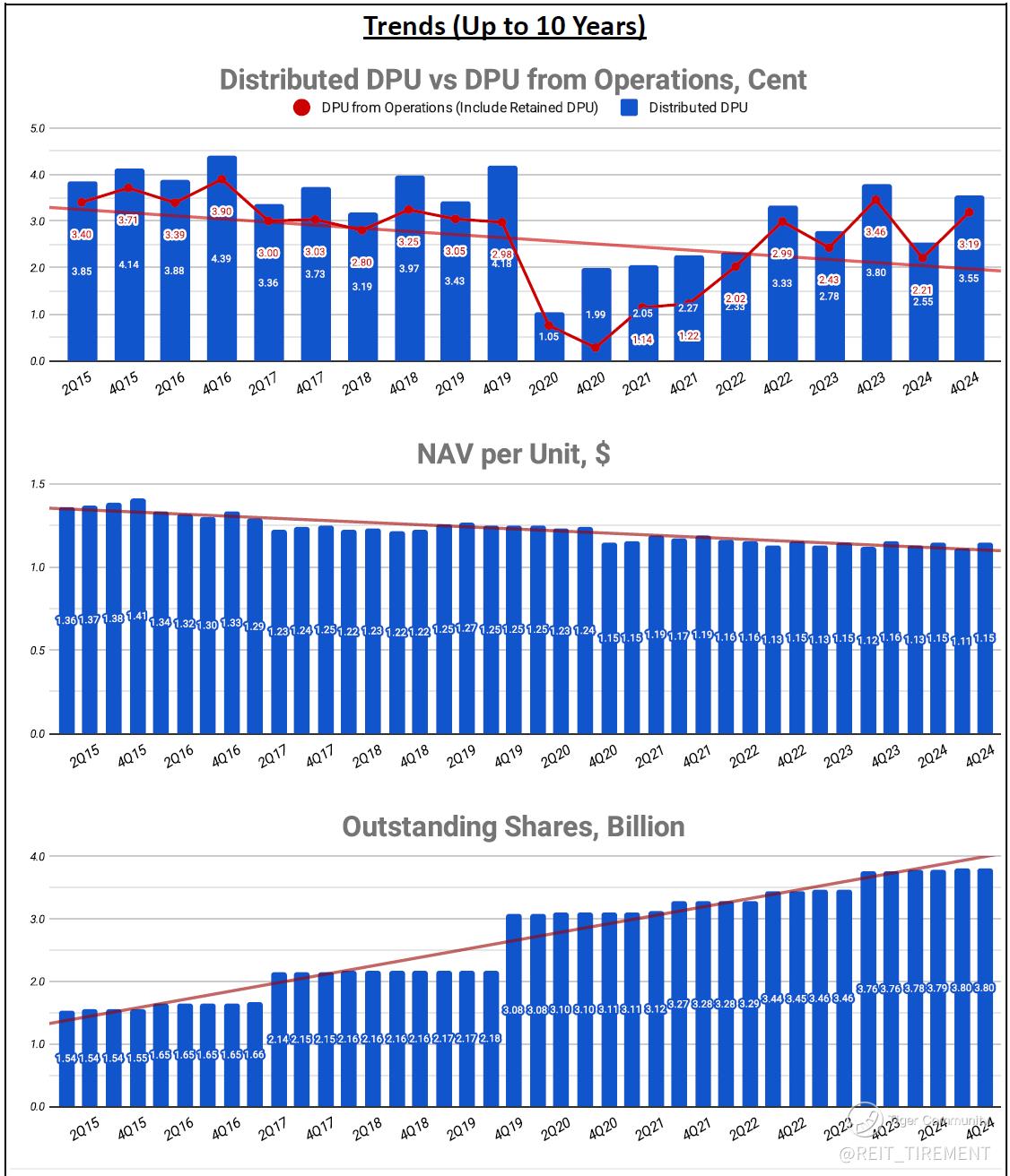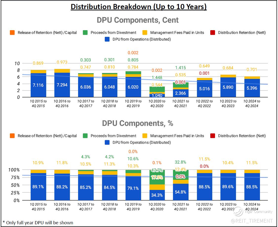 Downtrend: DPU from Operations, NAV per Unit, Top 5 Properties' Weightage, Property Yield, Operating Distributable Income on Capital, Operating Distribution Proportion