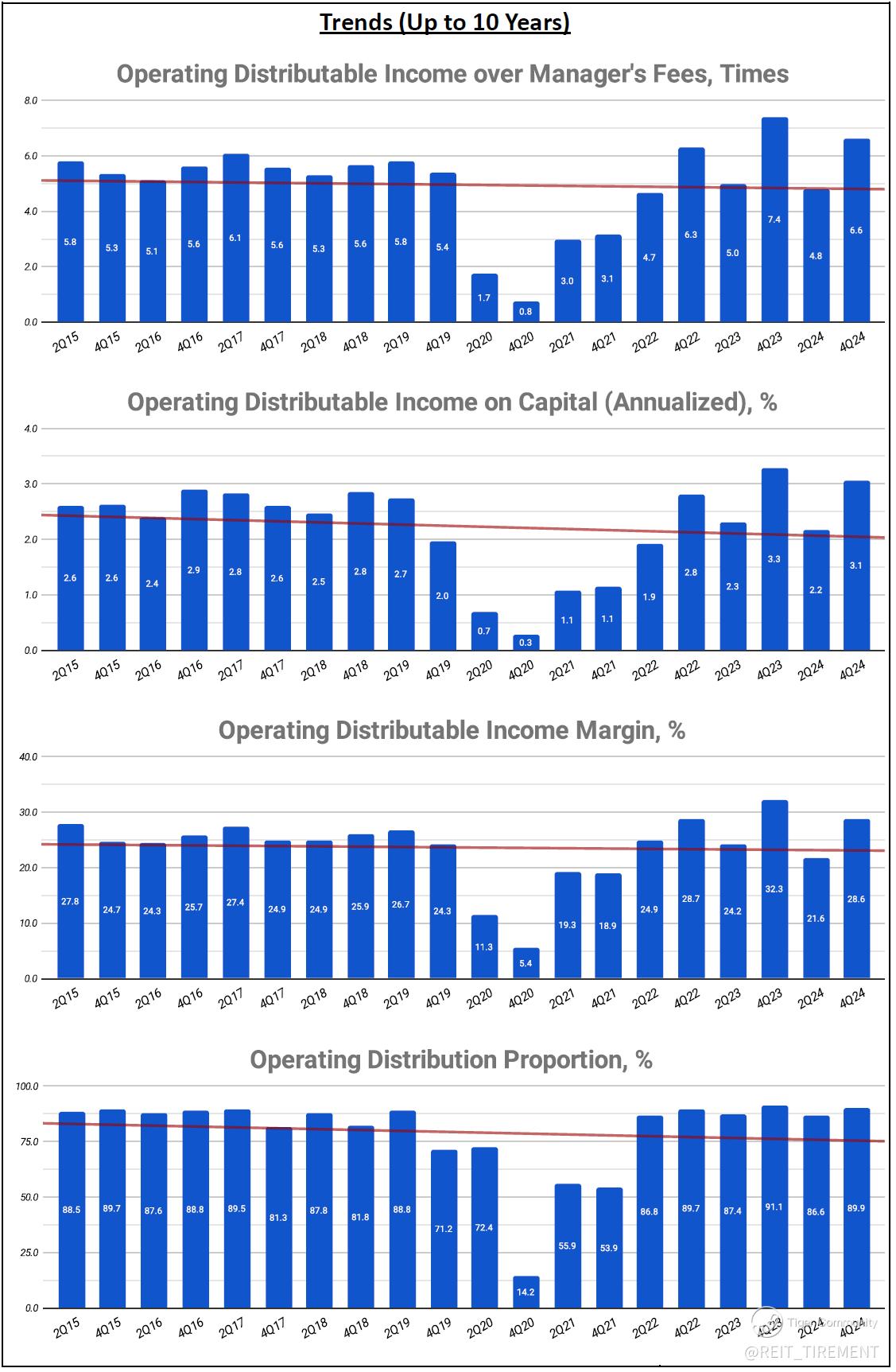 Slight Downtrend: Operating Distributable Income over Manager's Fees