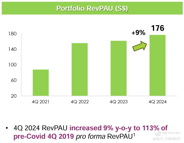 In 4Q 2024, RevPAU improved YoY, reaching 113% of pre-COVID levels. Similarly, 2H RevPAR showed positive growth, indicating strong demand recovery across CLAS’s portfolio.