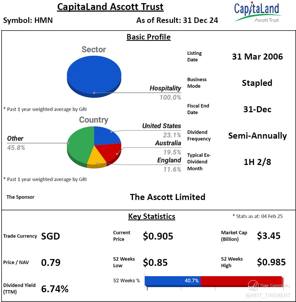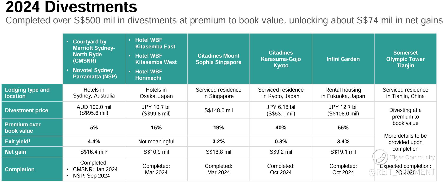 During 2H, CLAS divested several assets, including Novotel Sydney Parramatta, Citadines Karasuma-Gojo Kyoto, and Infini Garden. Additionally, the divestment of Somerset Olympic Tower Tianjin is expected to be completed in 2Q 2025.