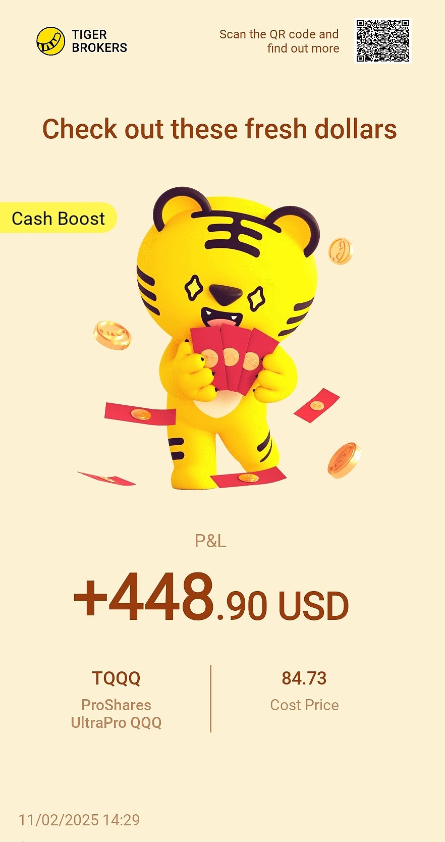 $ProShares UltraPro QQQ(TQQQ)$ I sold TQQQ today, and it feels good! Recently, with the $NASDAQ(.IXIC)$ bouncing back, TQQQ followed the trend and hit my target. The beauty of leveraged ETFs is that they amplify gains when the market is doing well. But of course, leverage also means more volatility, so caution is key. Keeping an eye on the market trends, short-term trades can really pay off when you're on point!