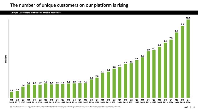 - Growing appeal of one-time events. The company noted record wagers on the Tyson/Paul boxing match in November. Netflix (NFLX) has signaled its interest in producing more of these live events, and many of its streaming competitors could follow suit. A greater number of these highly publicized specials could drive even more activity to DraftKings' betting platform.