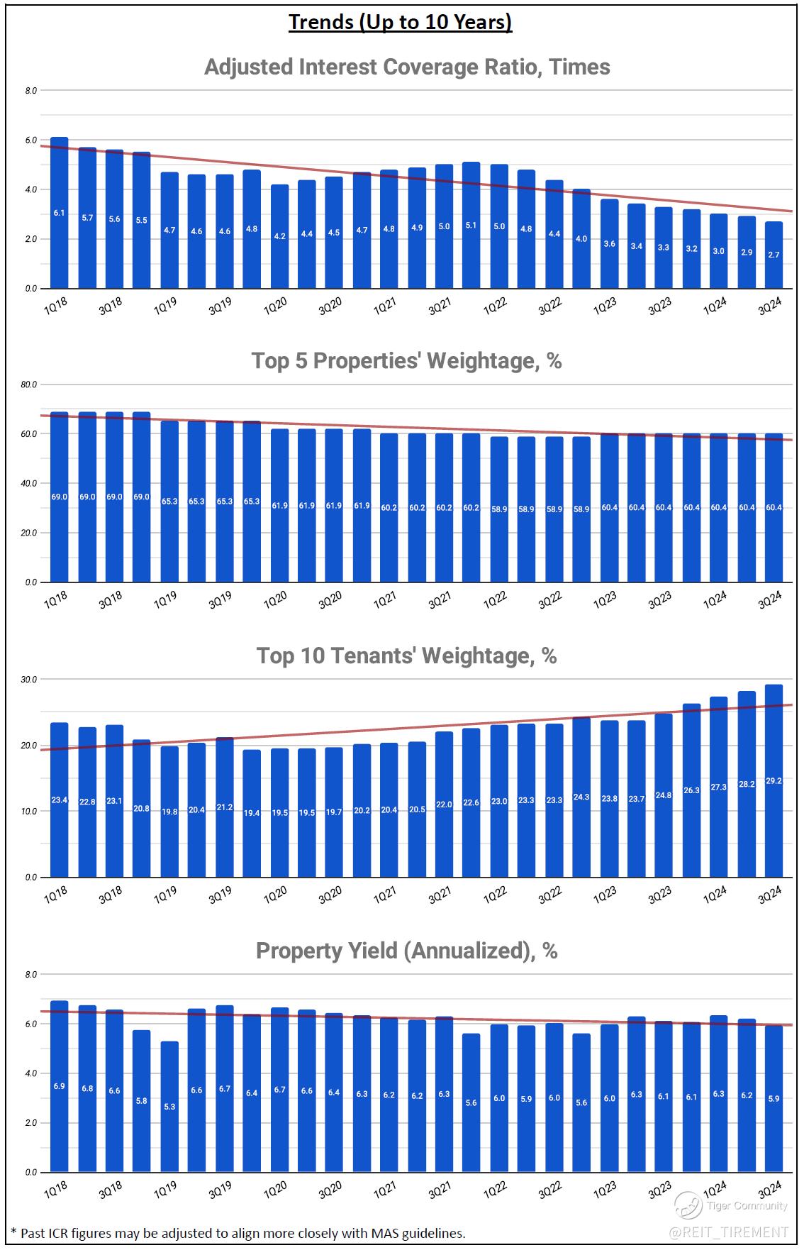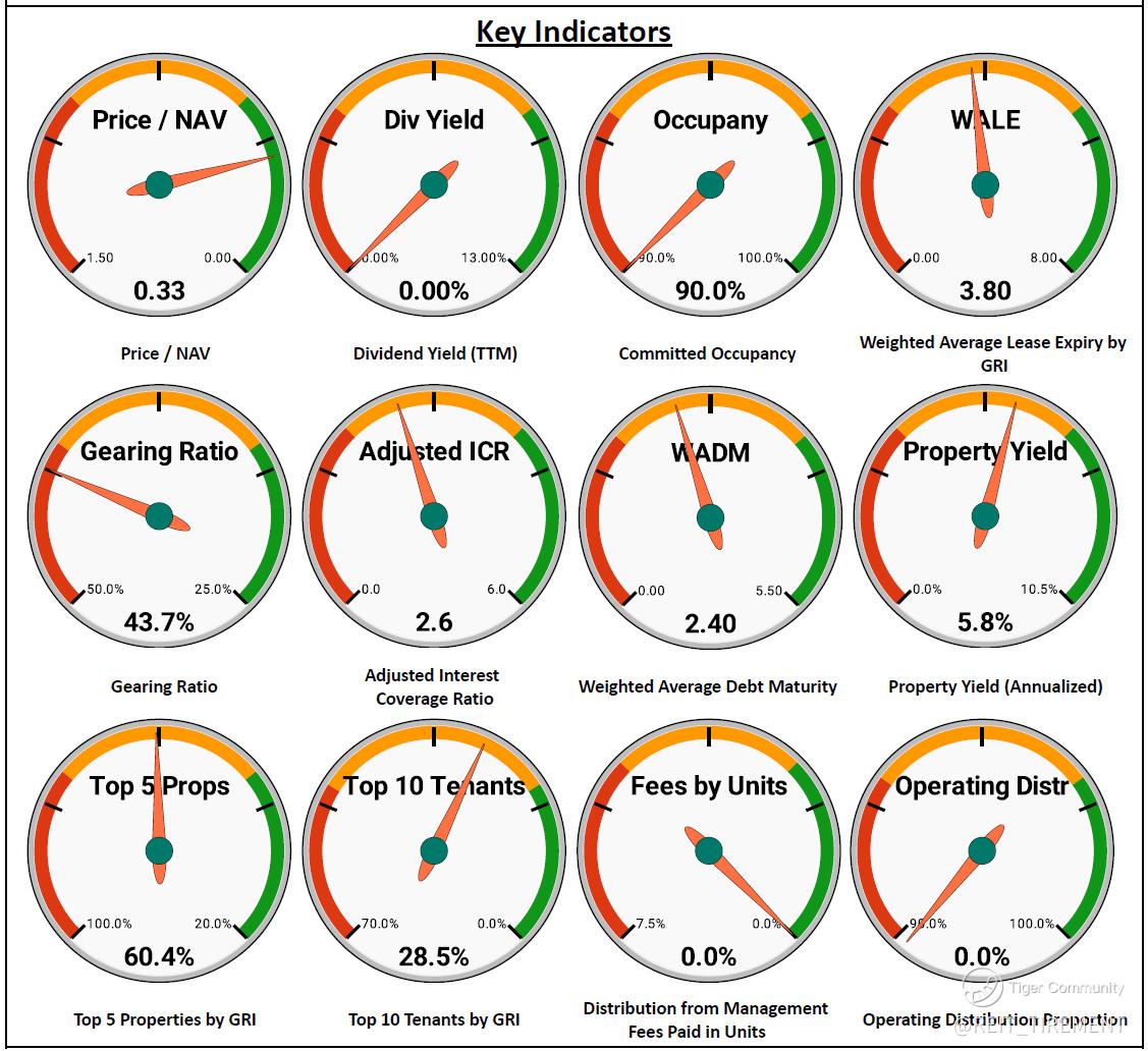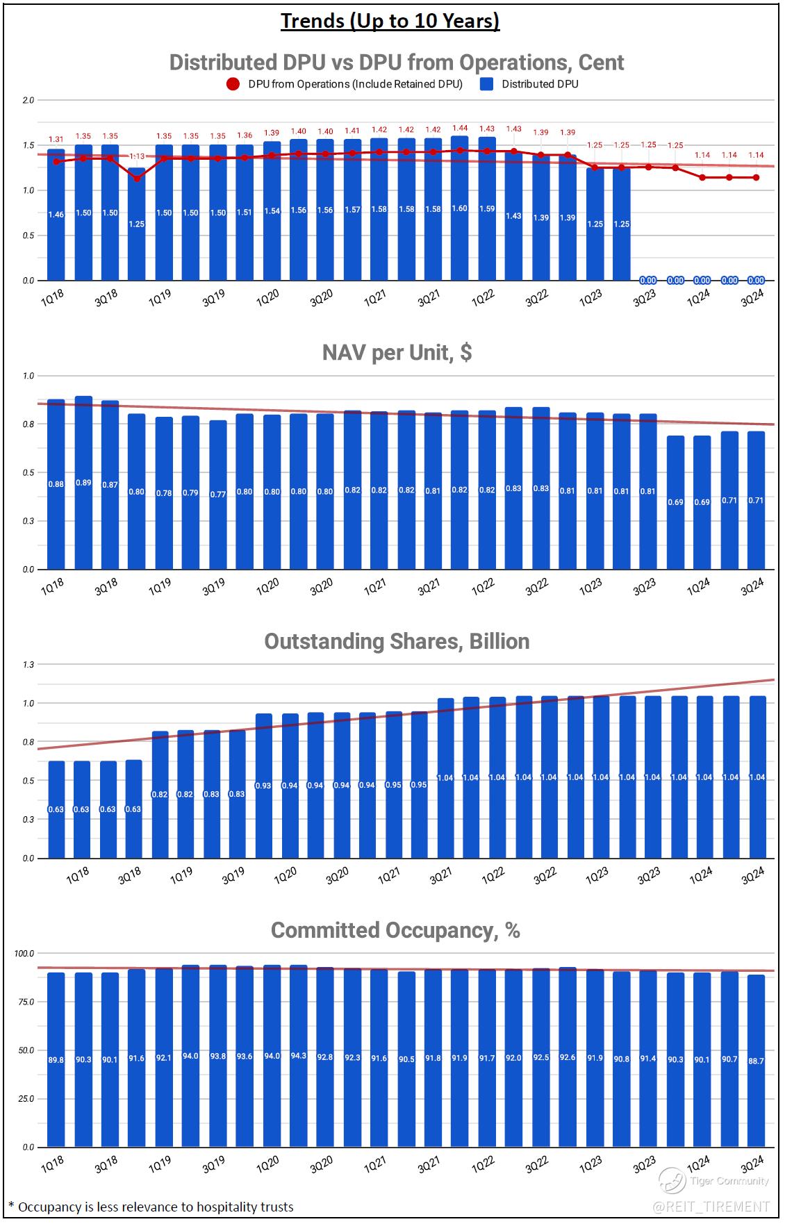 Downtrend: DPU from Operations, NAV per Unit, Adjusted Interest Coverage Ratio, Top 5 Properties' Weightage, Property Yield, Operating Distributable Income on Capital, Operating Distributable Income Margin, Operating Distribution Proportion