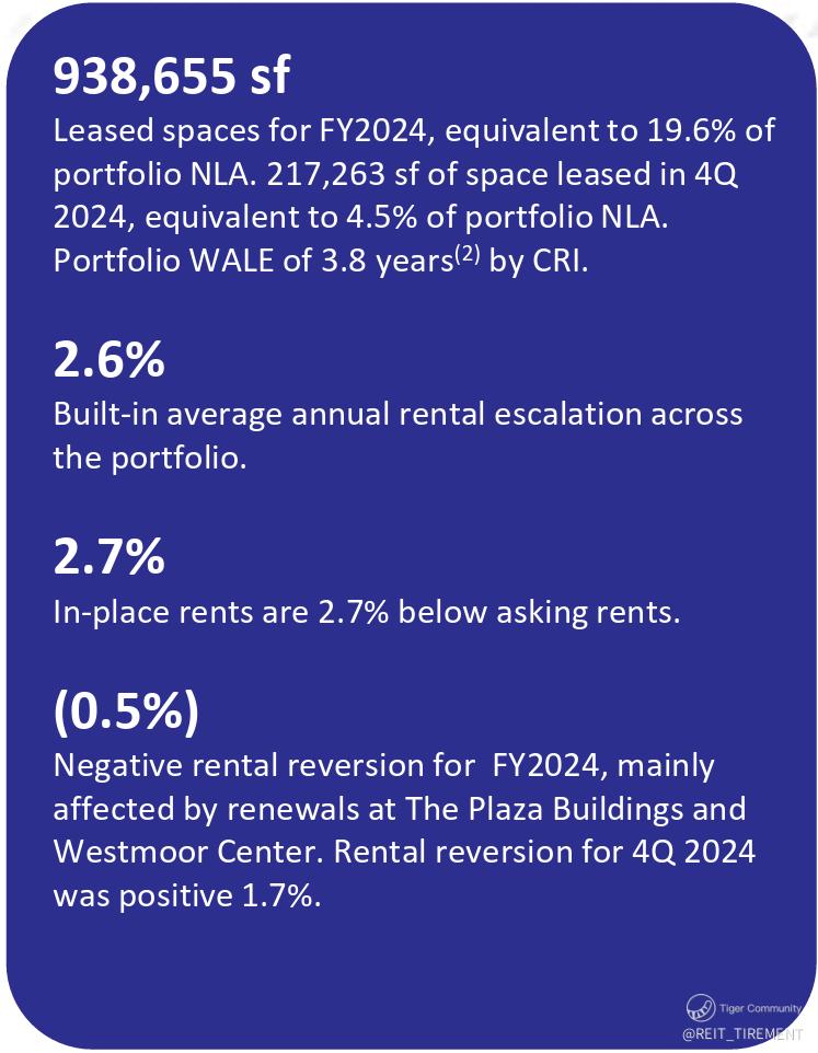 Rental reversion for 4Q 2024 was positive at 1.7%, while FY2024 recorded a negative rental reversion of 0.5%.