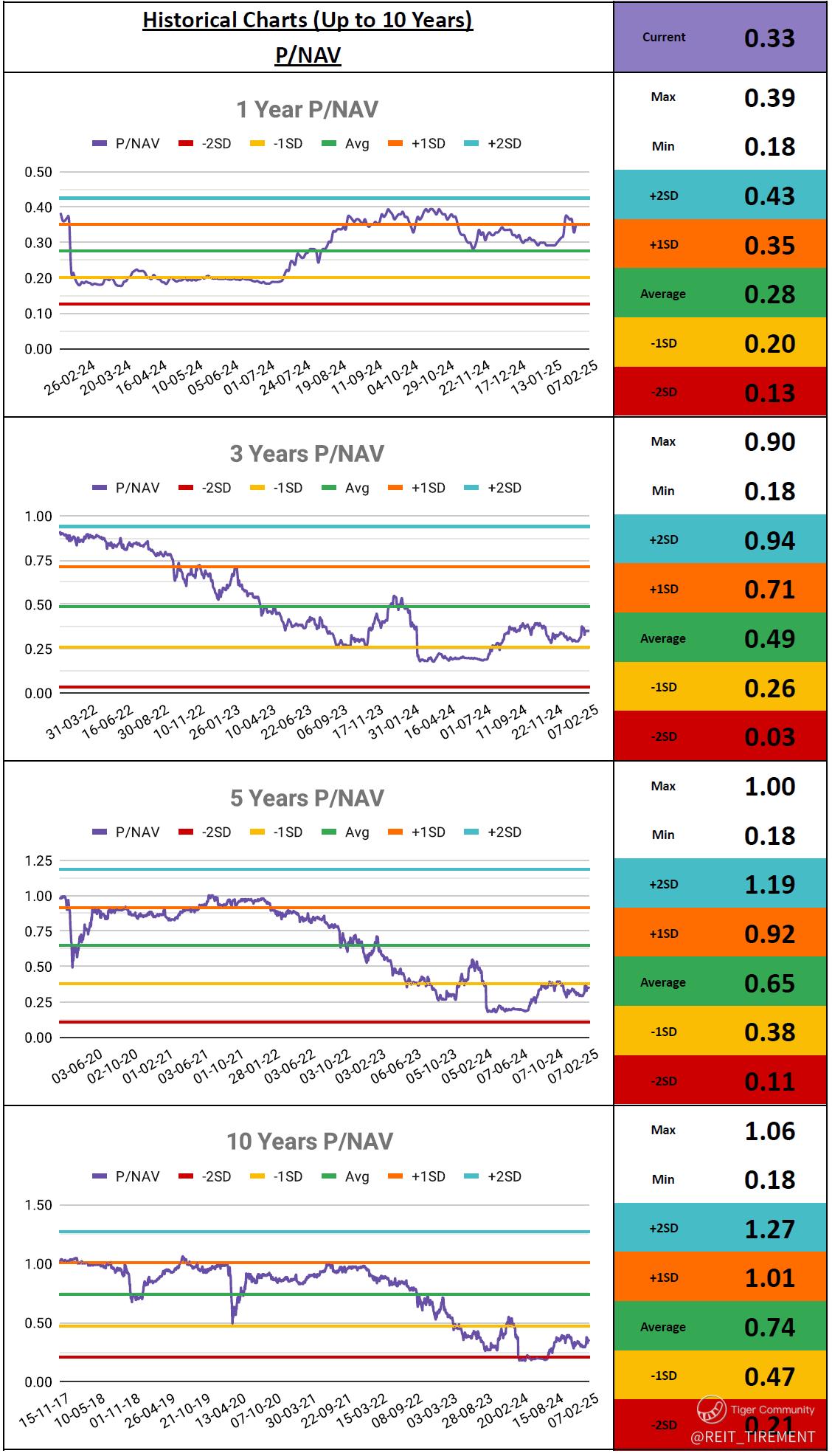 P/NAV: Average for 1y & 3y; Below -1SD for 5y & 10y