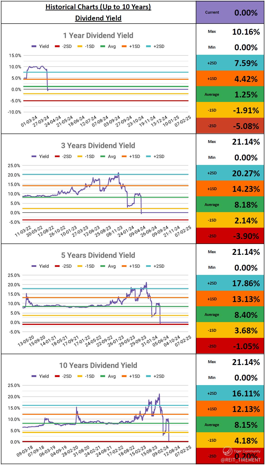 Dividend Yield: Below -2SD for 1y, 3y, 5y & 10y