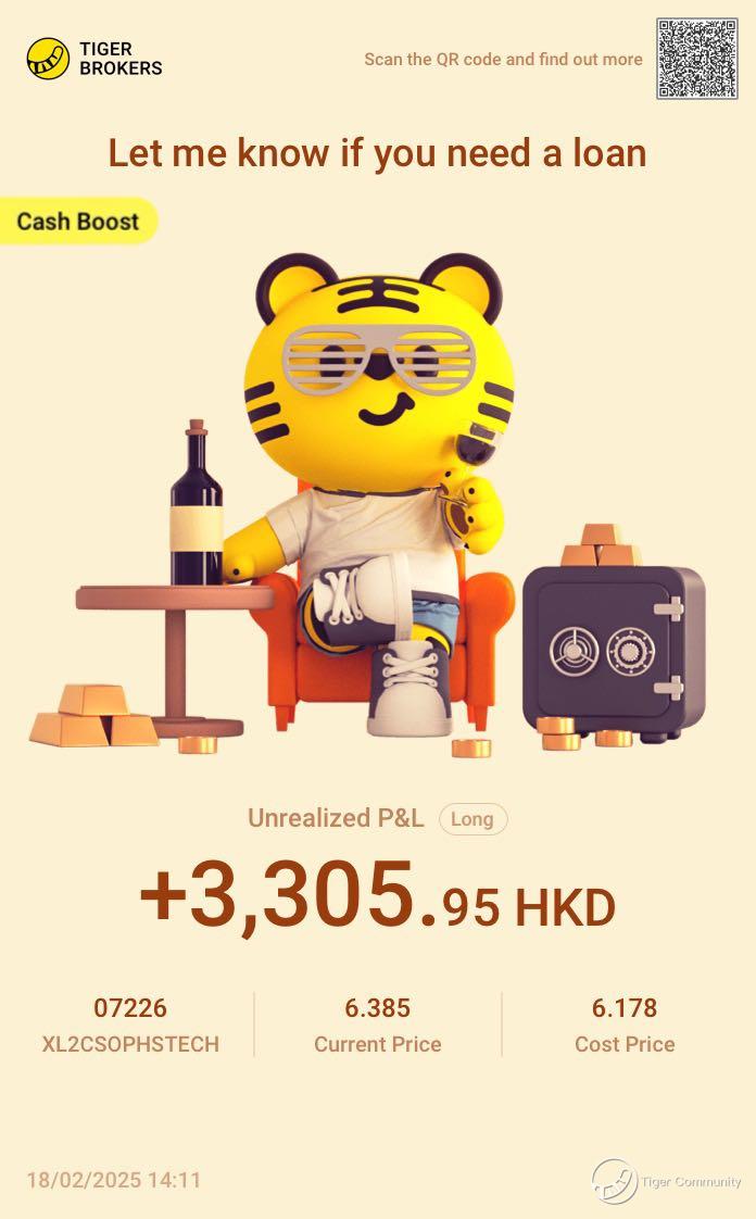 $XL2CSOPHSTECH(07226)$ This year, the Hong Kong stock market has been incredibly strong, with the $HSTECH(HSTECH)$ up by 17% in February alone—such explosive growth! I made a great profit in just one day of trading. So thankful to the stock market for paying me a "salary." With each step forward, retirement seems closer and closer.