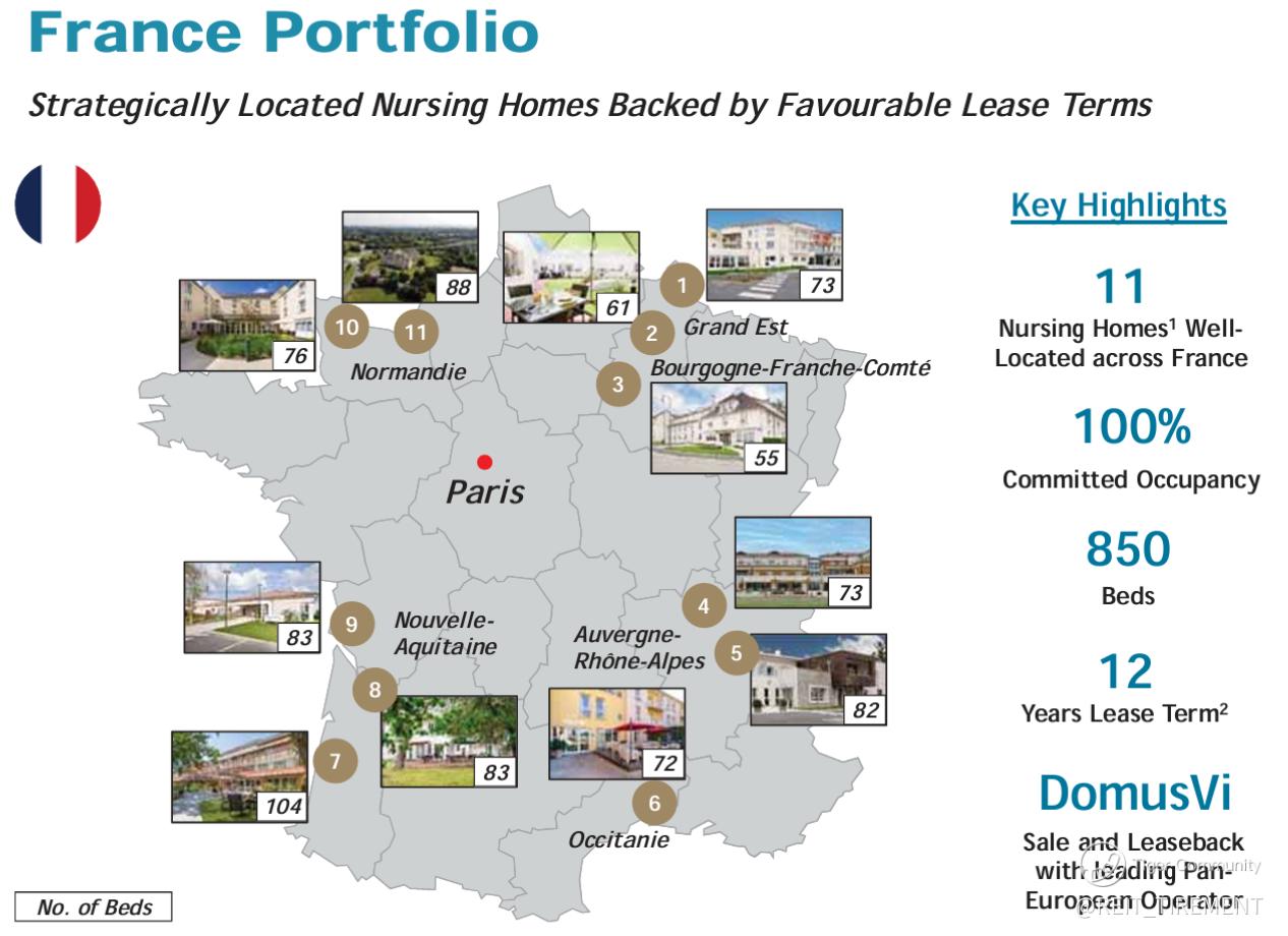 On December 20, 2024, PLife REIT completed the acquisition of 11 freehold nursing homes in France. These properties, spread across six regions, are leased to DomusVi, a leading pan-European nursing home operator, under a 12-year sale and leaseback agreement with indexed rent escalations.