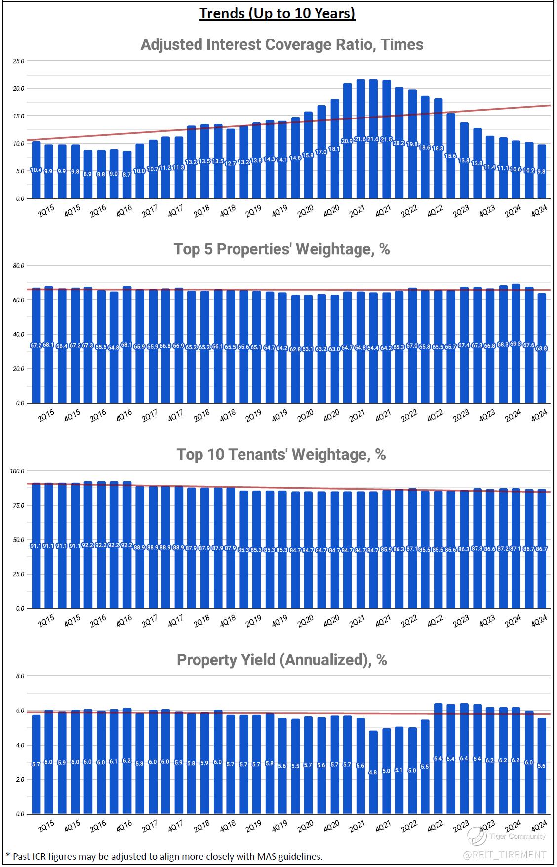 Slight Downtrend: Top 10 Tenants' Weightage, Operating Distributable Income Margin